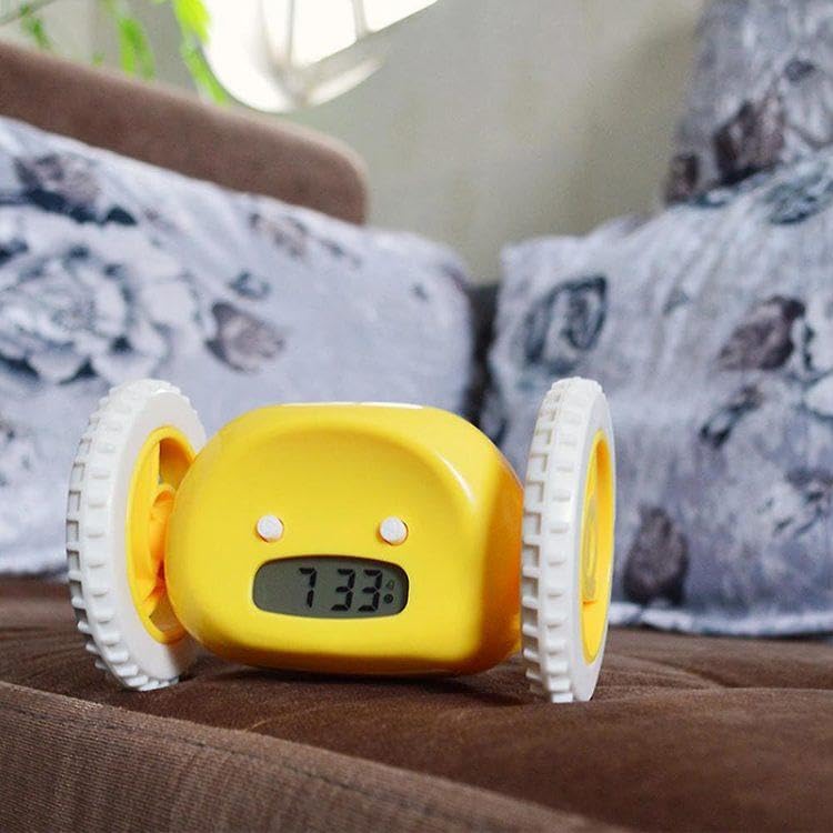 - ساعة منبه تهرب بعجلات - ساعة منبه فائقة الصوت للغاية تقفز وتهرب ما لم تقم بإيقاف عجلاتها.