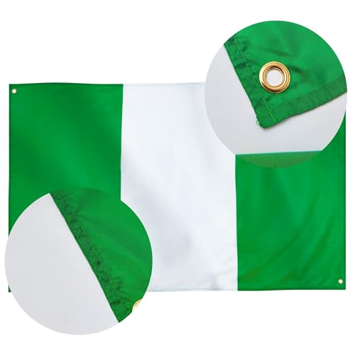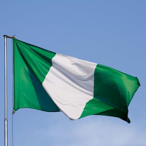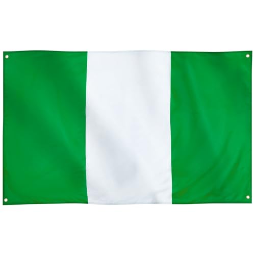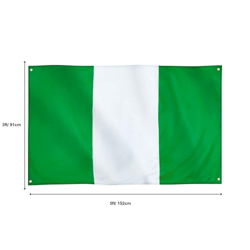 Runesol - علم نيجيريا من رونيسول، 91 × 152 سم (3 قدم × 5 قدم)، 4 فتحات، علم نيجيريا الوطني، علم نيجيريا، يوم الكومنولث، اعلام العيد، اعلام فاخرة للاستخدام الداخلي والخارجي، الوان نابضة بالحياة