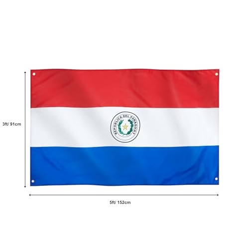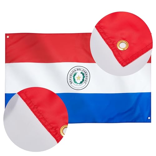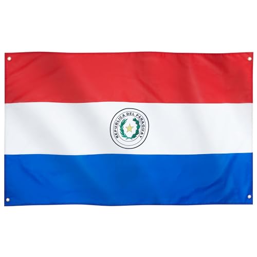 Runesol - علم باراغواي من رونيسول، 91 × 152 سم (3 قدم × 5 قدم)، 4 فتحات، علم جمهورية باراغواي الوطني، اعلام ممتازة للاستخدام الداخلي والخارجي، الوان زاهية