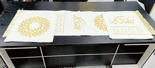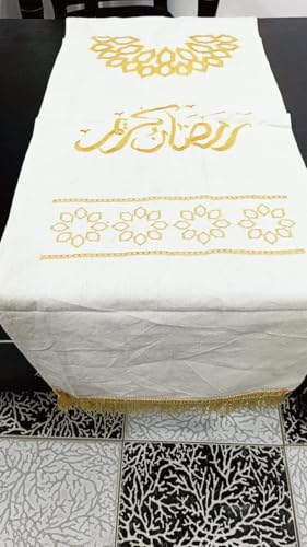 Generic - طقم رانر كتان مكون من 3 قطع رنر مقاس متر ونص و2 مخده 40 فى40 بسوسته سحريه تطريز رمضانى
