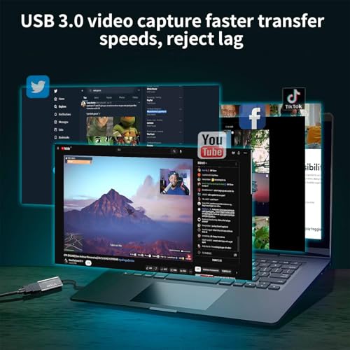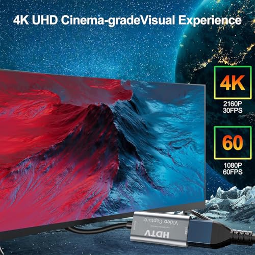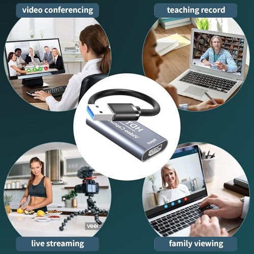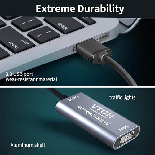 RUOVXWU - بطاقة التقاط فيديو 4K HDMI إلى USB 3.0، مسجل فيديو بدقة FHD 1080 بيكسل للبث المباشر للألعاب بمنفذ USB 3.0 متوافقة مع أنظمة التشغيل ويندوز 10 ولينكس وماك او اس من روفكسو، لون رمادي
