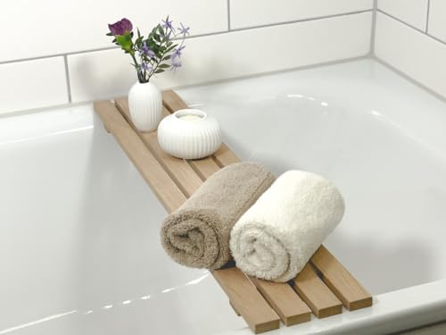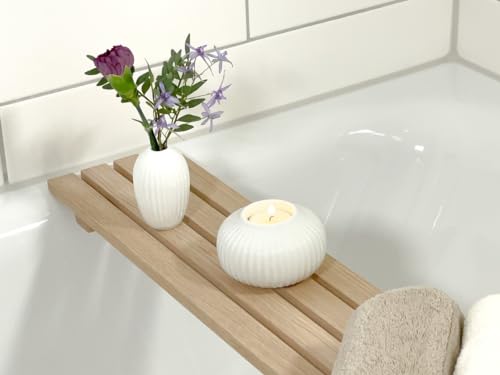RuPS - صينية حوض استحمام من الخشب الصلب الطبيعي الفاخر من روبس، رف حمام للحمام وحمام السباحة والمنتجعات الصحية، رف دش خشبي/ طاولة حمام
