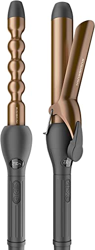 Rush Brush - أداة تجعيد الشعر 3 في 1 من راش براش، أسود، 230 درجة مئوية، 3 أسطوانات سيراميك تورمالين قابلة للتبديل - RB-3 في 1 - أسطوانة برونزية
