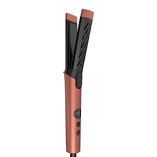 Rush Brush - مكواة تجعيد الشعر C1 كول بالواح من التيتانيوم ودرجة حرارة 220 درجة مئوية وفتحة للهواء البارد روز جولد راش براش