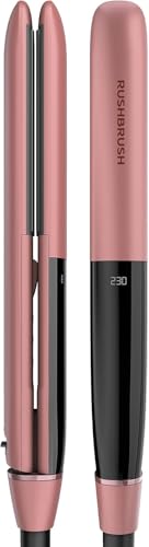 Rush Brush - راش براش مكواة فرد الشعر اكس 1 برو بلون ذهبي وردي - 230 درجة مئوية - لوحة سيراميك - تقنية ايونية - سخان بي تي سي