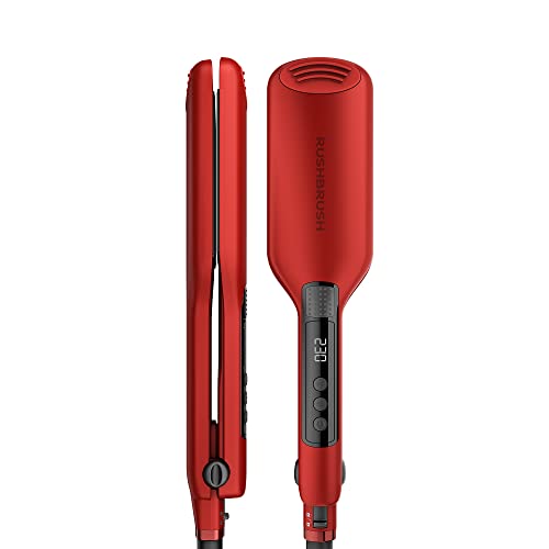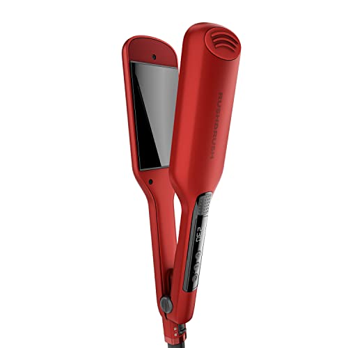 Rush Brush - مكواة فرد الشعر X1 عريضة بلون احمر وبـ14 مستوى حرارة، 230 درجة مئوية، الواح سيراميك، من راش براش