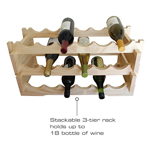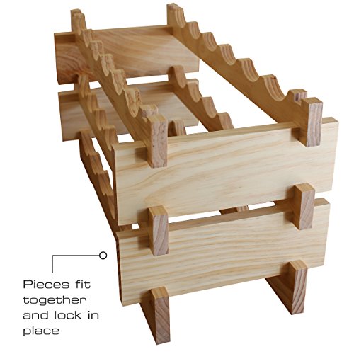 Rush Creek Creations - رف زجلجلت صلب من خشب الصنوبر 18 زجاجة من راش كريك كرييشنز - بدون تجميع أدوات - مصنوع يدويًا من خشب الصنوبر الصلب النيوزيلندي