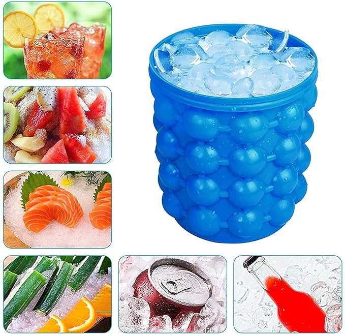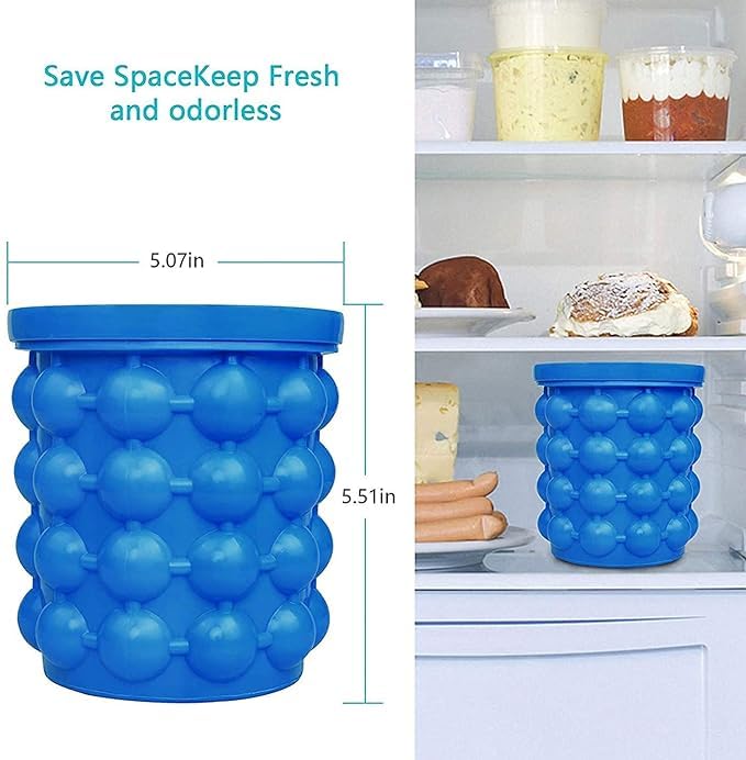 RUSHANK - دلو ثلج سيليكون 2 في 1 مع غطاء من روشانك، صانع مكعبات ثلج موفر للمساحة، صانع مكعبات ثلج سيليكون (عبوة من قطعة واحدة، أزرق)