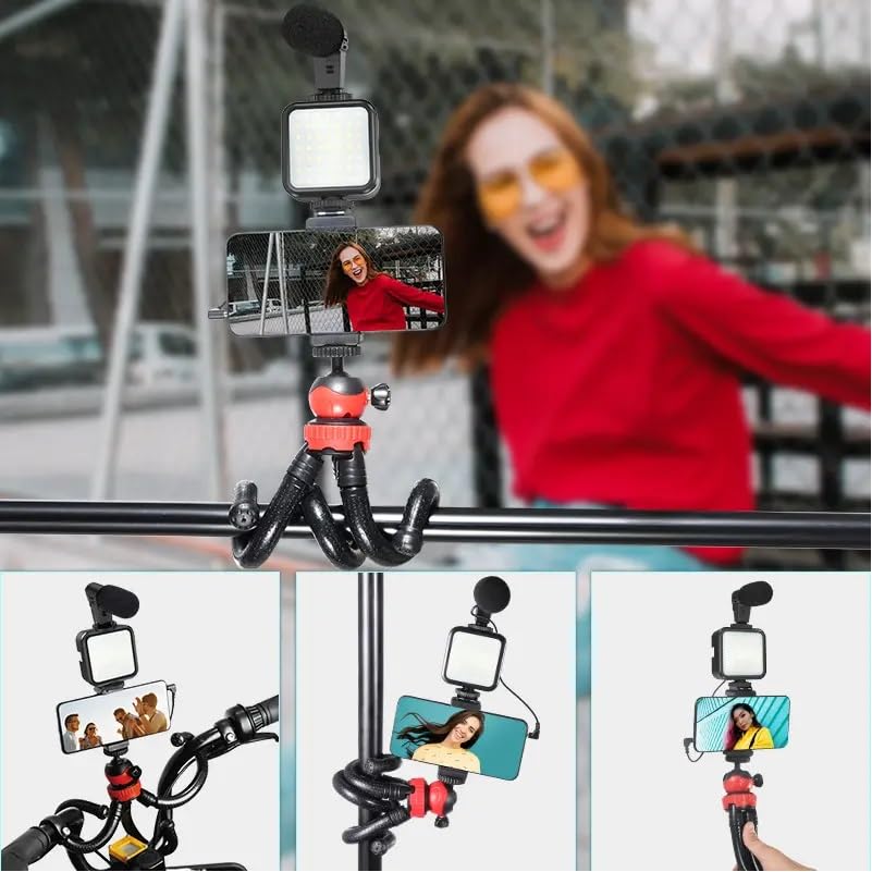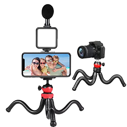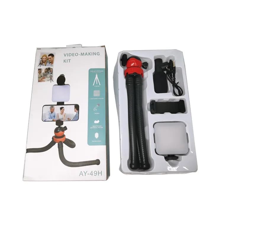 RUSKIN - حامل ثلاثي القوائم لكاميرا دي اس ال ار وكاميرا | مجموعة تسجيل فيديو كاميرا بارتفاع تشغيل لصنع الفيديو والميكروفون وحامل صغير ومصباح LED ومشبك جوال مقاطع AY-49H من روسكين أسود .