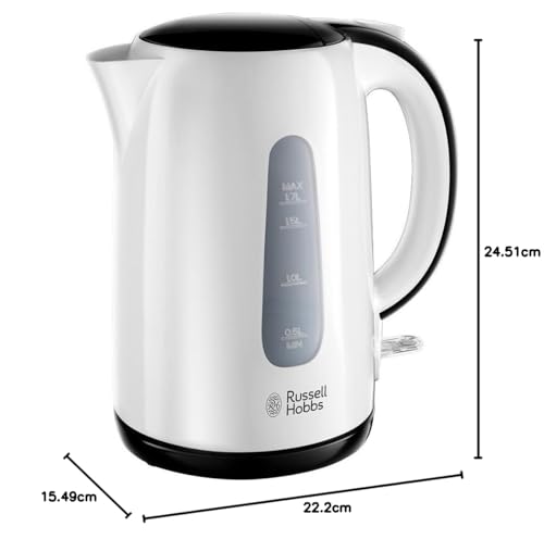 Russell Hobbs - راسل هوبز فلتر مياه اكوا اليكتريكو من بوليتور، 1.7 لتر، فلتر مضاد للحركة وقابل للغسل، 2200 واط، بلاستيكا، بيانكو، ماي بريكفاست، 25070-70