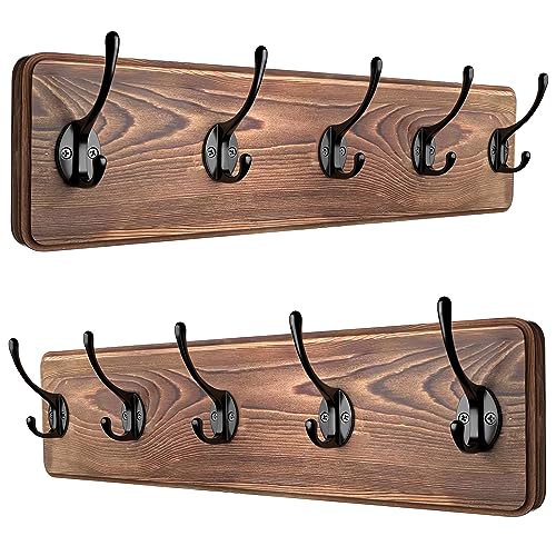 SAYONEYES - حامل معاطف خشبي يثبت على الحائط مع 5 خطافات معدنية للتعليق - 17 انش من خشب الصنوبر الصلب عالي التحمل - رف حائط للحمام وغرفة النوم والمدخل بني - عبوتان 22.0 رطل 22.0