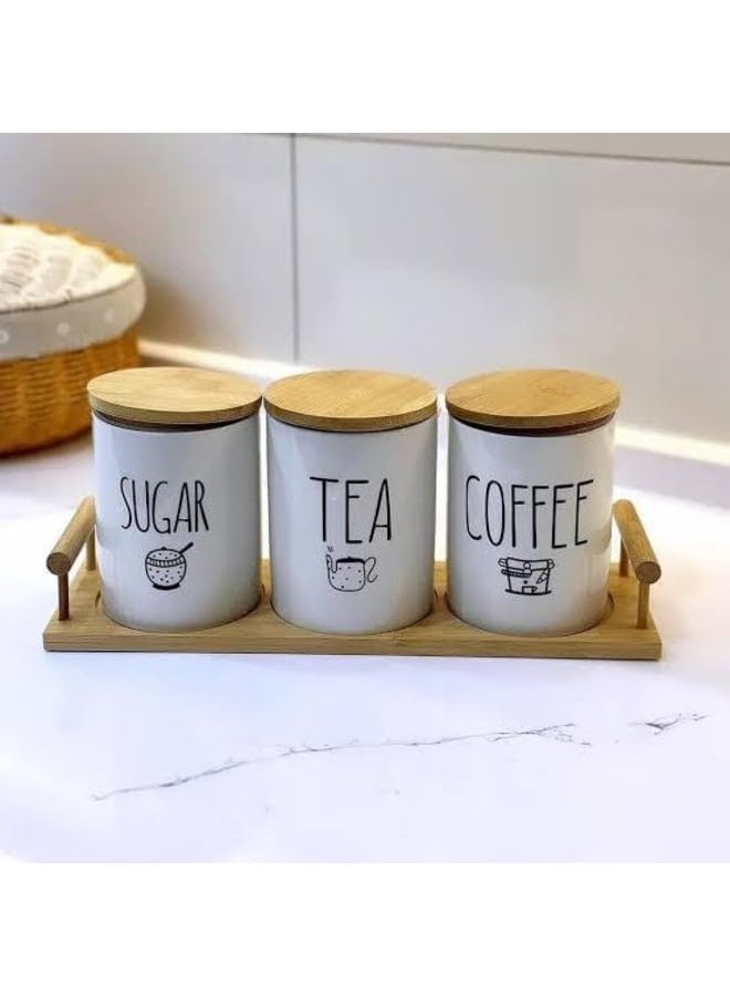 generic - مجموعة علب بورسلين محكمة الغلق للقهوة والسكر والشاي مكونة من 3 قطع من راستيك/كونتري