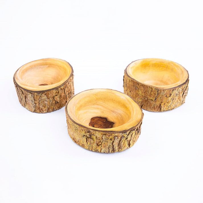 Generic - طقم اوعية من الخشب الطبيعي بتصميم ريفي مقاس 15 × 10 سم، مصنوع يدويًا، مجموعة من 3 قطع