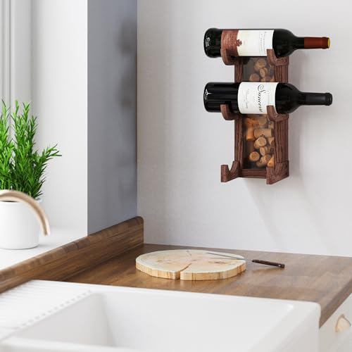 - متعددة الوظائف: حامل منظم لتخزين زجاجات المشروبات لتعزيز ديكور المنزل الريفي بحامل يثبت على الحائط مثالي لتخزين زجاجات المشروبات بمظهر رائع. يمكنك تثبيته على الحائط أو استخدامه على سطح الطاولة. أبعاد المنتج: 33 × 11.4 × 16 سم (الارتفاع × العرض × العمق)