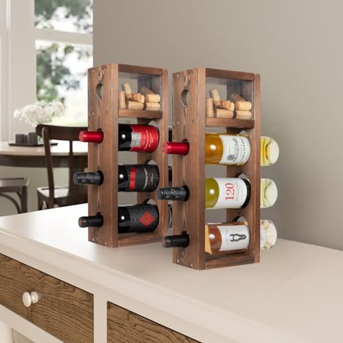 Rustic State - راستيك ستيت رف مشروبات خشبي عمودي يوضع على سطح الطاولة مع وحدة تخزين من الفلين من سونوما | منظم رف حامل مشروبات قائم بذاته يوضع على سطح الطاولة | يحمل 3 زجاجات | للمنزل والمطبخ وغرفة الطعام وديكور