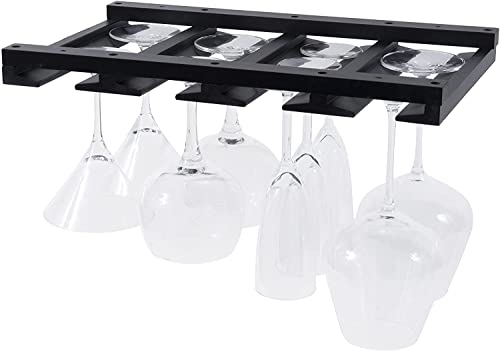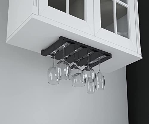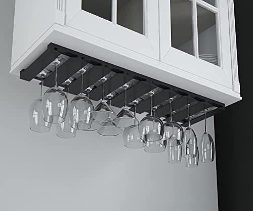 Rustic State - راستيك ستيت رف زجاجي من ستيم وير يجعل المطابخ أو البار تبدو رائعة تناسب تماما 6-12 كوب تحت الخزانة، سهل التركيب مع البراغي المتضمنة، رف زجاجي رائع للتعليق (اسود)