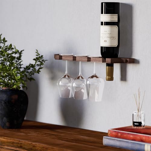 Rustic State - راستيك ستيت حامل اكواب يثبت على الحائط من سوفلا، يناسب 8 اكواب نبيذ، لون خشب الجوز