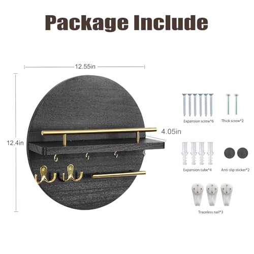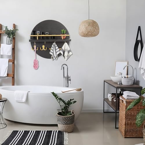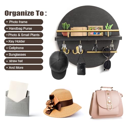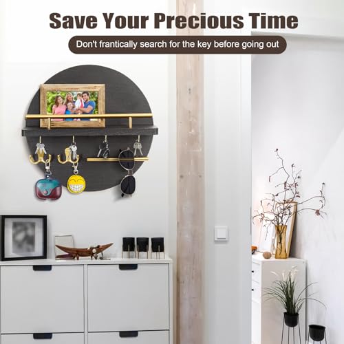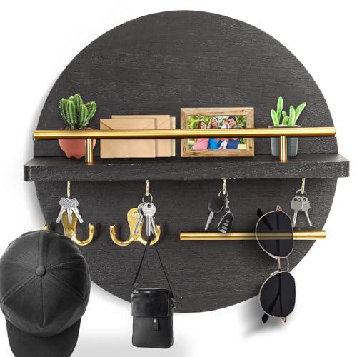 DAAIXC - سلسلة مفاتيح خشبية دائرية بنمط ريفي، مناسبة للمدخل الرئيسي، غرفة النوم، الرواق، المكتب والمطبخ، حامل مفاتيح حائط للمنزل (أسود)