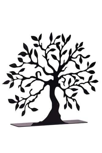Generic - قطعة ديكور ريفية للطاولة بتصميم ظل شجرة أنيق من الحديد بلمسة نهائية عميقة مع قاعدة من الخشب الطبيعي، مثالية لتزيين طاولات الاستقبال أو زوايا الدراسة أو المساحات العصرية الأنيقة، لون أسود
