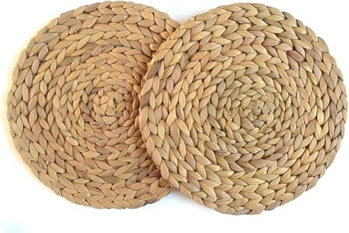 Generic - كوستر طاولة ريفية - مفارش طاولة صديقة للبيئة مصنوعة يدويًا من نبات زهرة الياسنت المائية الطبيعية بنسبة 100%، مثالية لحماية طاولة الطعام وإضافة لمسة من الطبيعة إلى غرفة المعيشة والمطبخ قطعتين