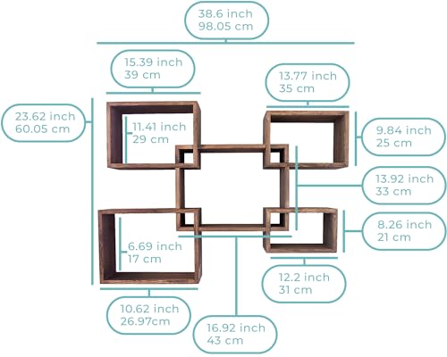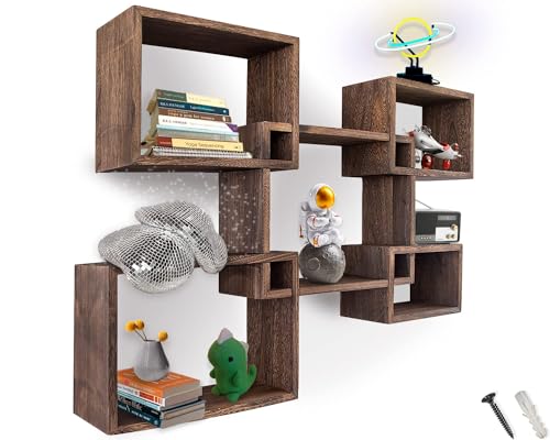Comfify - ارفف عائمة مربعة الشكل تثبت على الحائط بتصميم ريفي - مجموعة من 5 ارفف مربعة للحمام وغرفة النوم وغرفة المعيشة وغيرها - تتضمن براغي ومثبتات - عرض ديكور حائط للمنزل - بني مشعل