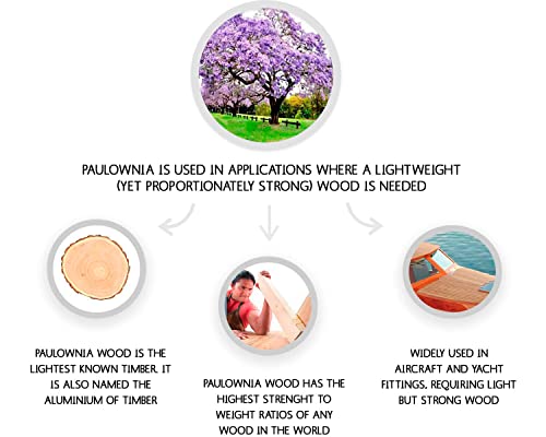 - خشب بولونيا خفيف وقوي: يُعرف خشب الباولونيا بأنه واحد من أقوى وأخف الأخشاب المتوفرة في العالم، ويستخدم على نطاق واسع في الصناعات التي تتطلب خشبًا خفيفًا جدًا ولكنه قوي. سيناسب منتجنا احتياجاتك تمامًا من خلال كونه خفيف الوزن ولكنه في نفس الوقت متين بما يكفي لتثبيت متعلقاتك المفضلة في مكانها.
