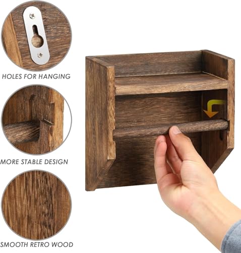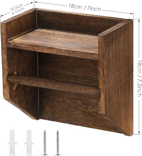 - حامل ورق تواليت خشبي ريفي مع رف موزع ورف، حامل مناديل يثبت على الحائط مع رف تخزين للهاتف