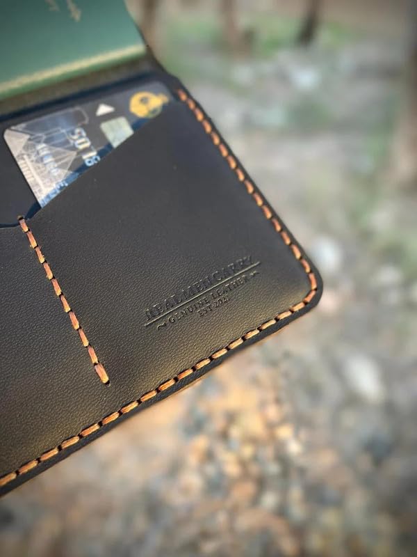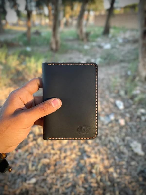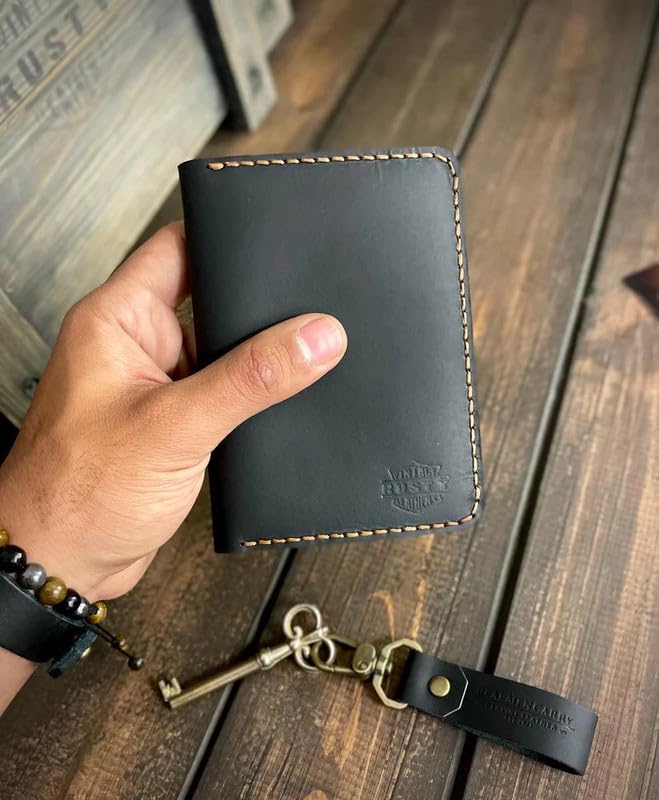 Dusty Leather - محفظة من راستي مصنوعة من الجلد الطبيعي للجنسين، بتصميم كلاسيكي باللون الأسود، مع حجرة لجواز السفر وفتحات للبطاقات