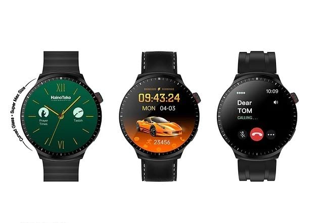 Generic - ساعة ذكية موديل RW-50 بشاشة AMOLED ومقاومة للماء بتصنيف IP68 مع 3 أساور (معدن، سيليكون، جلد) تدعم المكالمات وأوقات الصلاة، تتبع اللياقة البدنية، متوافقة مع IOS واندرويد للرجال والنساء