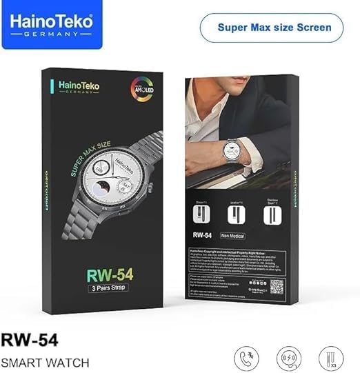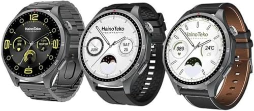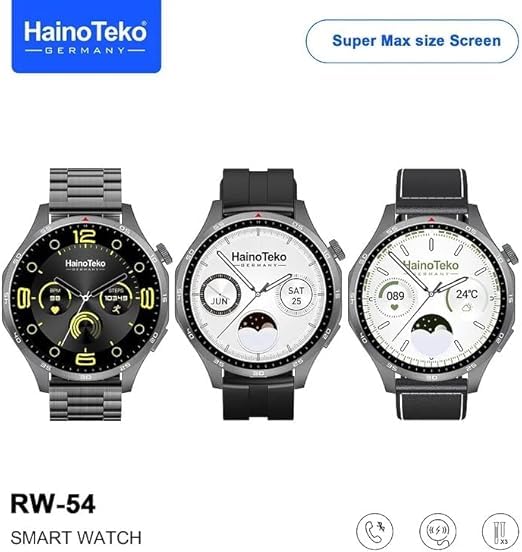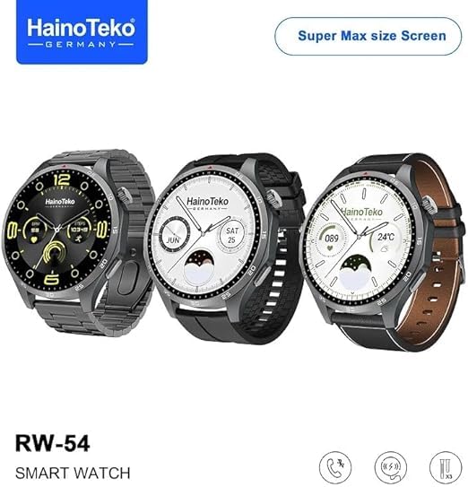 HainoTeko Germany - ساعة ذكية RW-54 بشاشة اموليد دائرية لدعم المكالمات والبلوتوث، بشحن لاسلكي و3 أساور قابلة للتبديل وخاصية تتبع اللياقة البدنية، متوافقة مع iOS وأندرويد