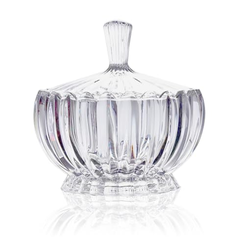 Rxcvkmw - طبق حلوى زجاج بغطاء من ار اكس سي في كيه ام دبليو وعاء كريستال فاكهة مزخرف أبيض عدد القطع: 1