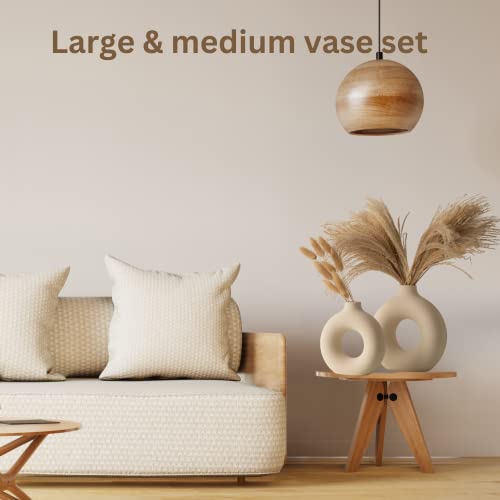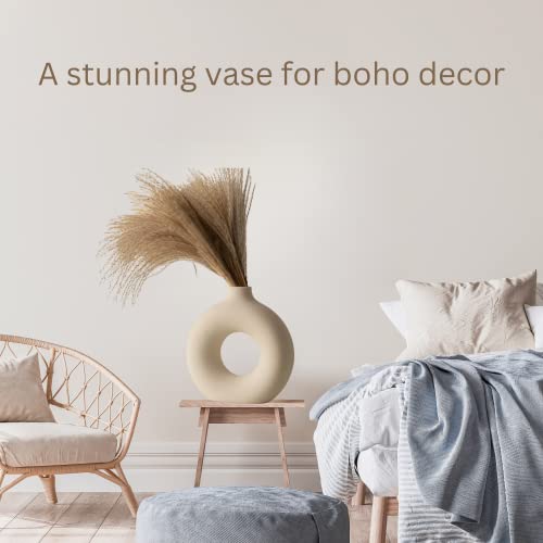 - فازة نبات عشب البامباس السيراميك المصممة على شكل دونات مثالية لتزيين حفلات الزفاف والديكورات البسيط وديكور طاولات المكاتب وإكسسوارات المنزل وغرف المعيشة وتزيين الطاولات والديكورات ذات نمط سكاندي وديكور الطاولات المركزية للمنزل.