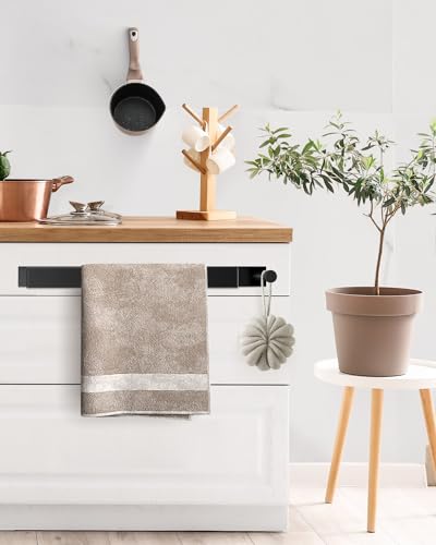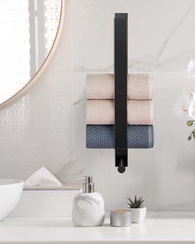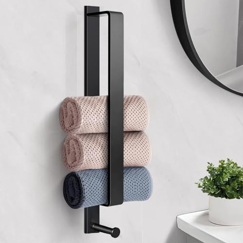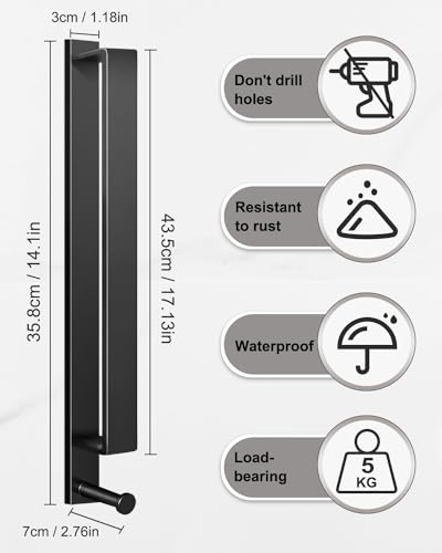 RYLIFEOGI - حامل فوط أسود ذاتي اللصق من الفولاذ المقاوم للصدأ، يثبت على الحائط 43.5 سم مع خطاف للحمام من ريلايفوجي