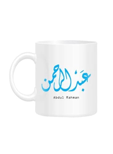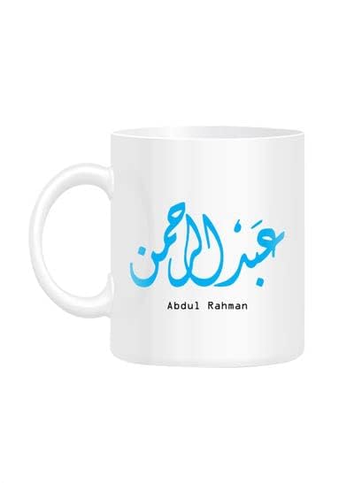 RYN - مج مطبع باسم 'عبد الرحمن' بفن الخط العربي لون ابيض مقاس 10 سم من رين، سيراميك