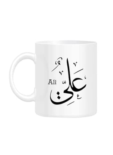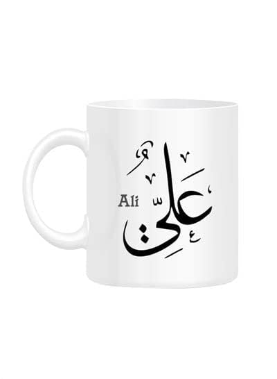RYN - مج مطبوع عليه اسم علي بفن الخط العربي من ار واي ان برينتد ديزاين، ابيض، 10 سم، سيراميك