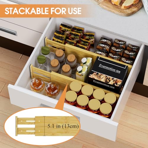 - فواصل من الخيزران متعددة الأغراض: يمكن تركيب منظمات أدراج المطبخ هذه في أي درج في منزلك أو مكتبك. مثالية لتنظيم الملابس وأدوات المطبخ واللوازم المكتبية والمكياج وفوضى الحمام وما إلى ذلك. حل مثالي للحفاظ على كل شيء منظمًا وجعل منزلك يبدو مرتبًا.