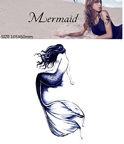 - الكمية - قطعة واحدة، مقاس 10.5 × 6 سم، ملصق وشم مؤقت ثلاثي الأبعاد - تصميم حورية البحر الجميل