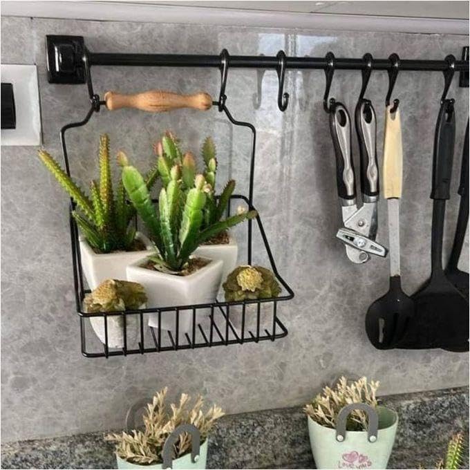 - مزود بخمسة خطافات على شكل حرف S، ويوفر خيارات تعليق متعددة الاستخدامات للأواني والمقالي والأواني وأدوات المطبخ الأخرى، مما يضمن سهولة الوصول والتنظيم الفعال.