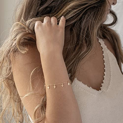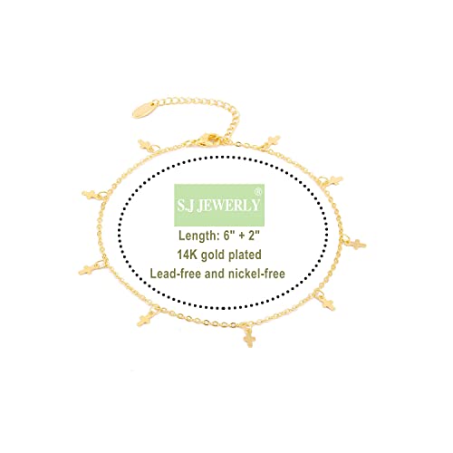 S.J JEWELRY - مجوهرات صغيرة وأنيقة للنساء مركبة ومطلية بالذهب عيار 14 قيراط- مطلية بالفضة على شكل صليب ومرساة- لؤلؤ المياه العذبة قلب يدوية الصنع من اس جيه جوليري - عتيق