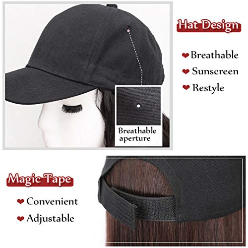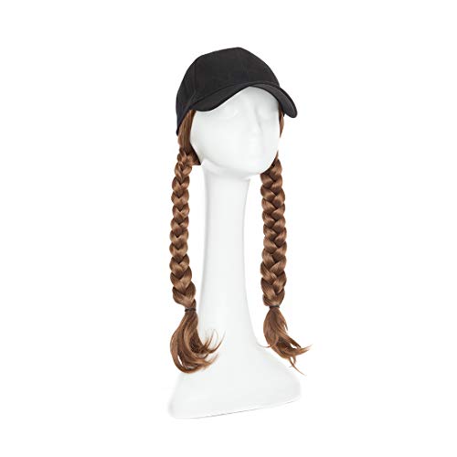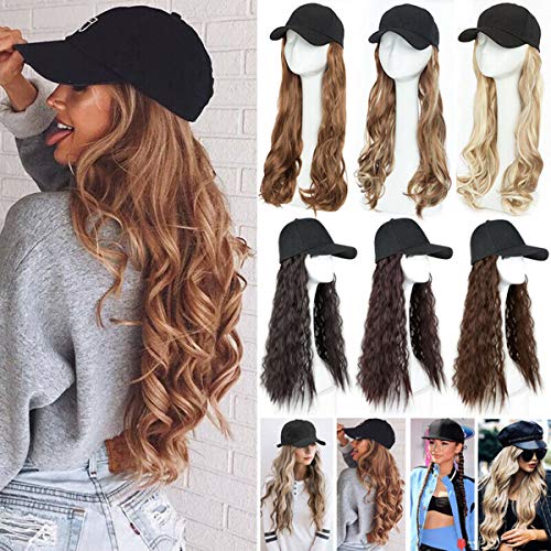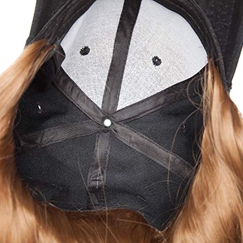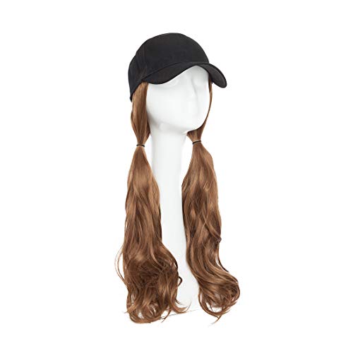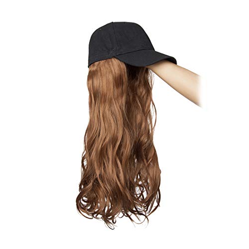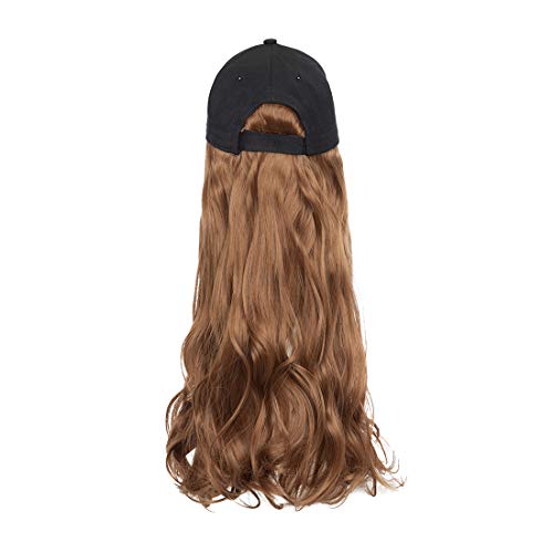 S-noilite - قبعة بيسبول صناعية طويلة مجعدة ومموجة مع شعر بني وأسود وأشقر للنساء من اس-نويليت، قبعات شعر مستعار مع وصلات شعر مموج بني فاتح