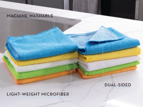S&T INC. - شركة اس اند تي انك قماش تنظيف من الالياف الدقيقة مع جانب من البولي للفرك، متعدد الالوان، 30.5 سم، 10 قطع