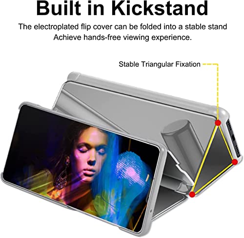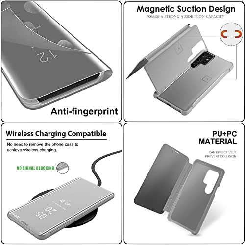 Croazhi - حافظة S22 الترا فليب لموبايل سامسونج جالاكسي S22 شفافة رفيعة مع مسند مغناطيسي بزاوية 360 درجة واقية مضادة للصدمات لسامسونج S22 فضي بلاستيك