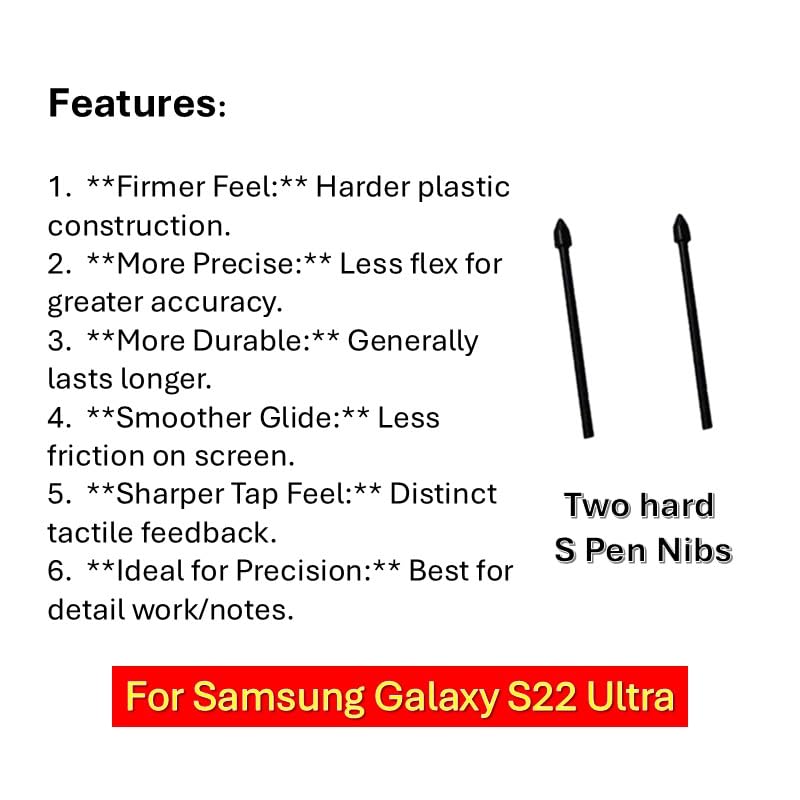 - محتويات العبوة: أطراف بديلة صلبة وعالية الجودة لقلم اس لجهاز S22 الترا كما هو موضح في قائمة الصور.