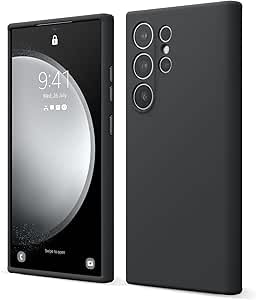 Generic - جراب حماية من السيليكون السائل بتغطية كاملة مضاد للصدمات ورفيع ومضاد للخدش مع بطانة ناعمة من المايكروفايبر متوافق مع موبايل سامسونج جالاكسي S24 الترا، أسود