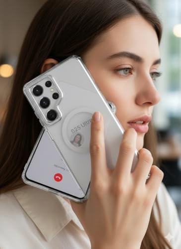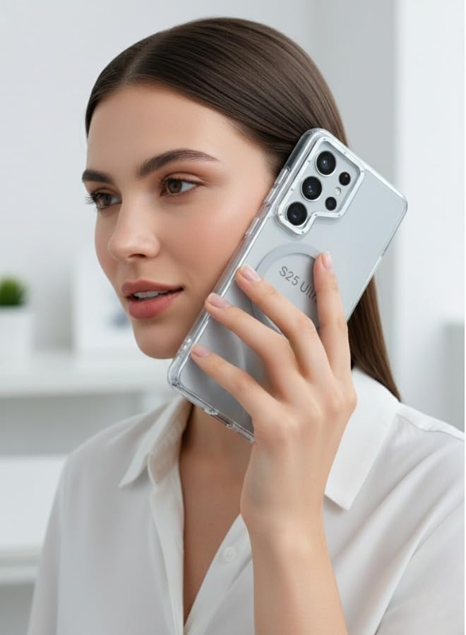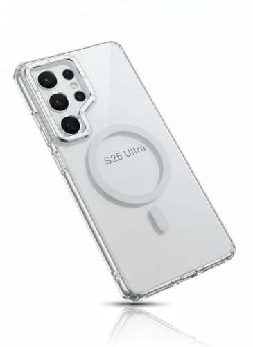 Generic - جراب حماية شفاف مغناطيسي بتقنية الشحن اللاسلكي بتصميم رفيع مضاد للصدمات ومضاد للاصفرار مع حماية من الدرجة العسكرية، متوافق مع موبايل S25 الترا، لون أبيض