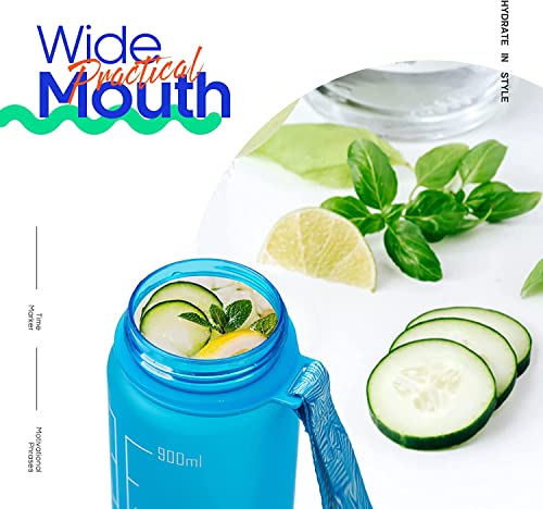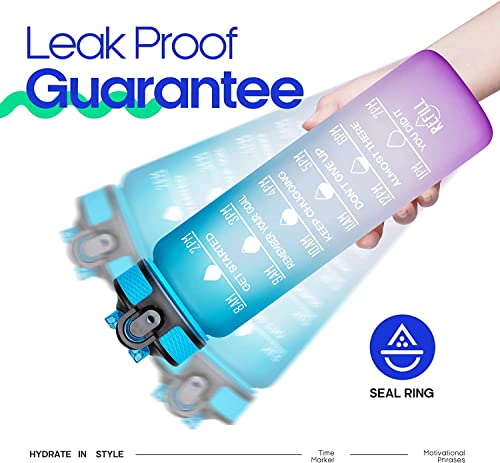 S2C - زجاجة مياه لتشجيع الاطفال على الشرب سعة 1 لتر مانعة للتسرب مع شاليموه وعلامات للوقت مثالية للرياضة والمدرسة والصالة الرياضية والمكتب (ازرق متدرج)، بلاستيك سيليكون