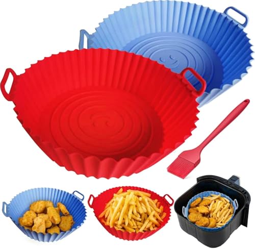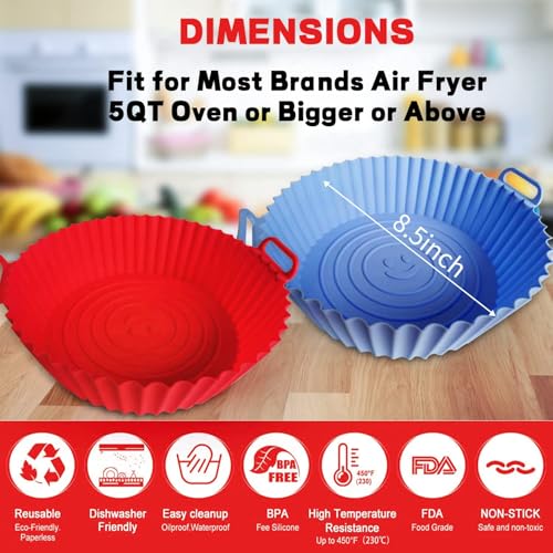 SABBAG - بطانات مقلاة هوائية من السيليكون مقاس 22 سم، قطعتين قابلة لاعادة الاستخدام مع فرشاة معجنات من 4 الى 7 كوارت، اكسسوارات فرن التحميص