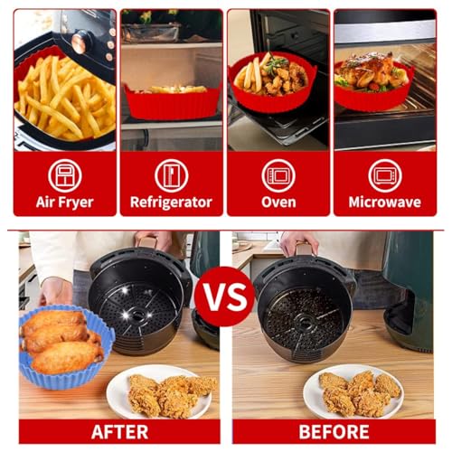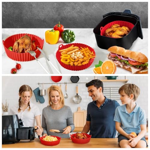 - سهل التنظيف: بطانات المقلاة الهوائية المستديرة المصنوعة من السيليكون آمنة تمامًا للغسل في غسالة الأطباق، مما يجعل التنظيف سهلاً. لا داعي للمزيد من الغسيل اليدوي أو الفرك. بالإضافة إلى ذلك، فإنها تحافظ على نظافة المقلاة الهوائية وتمنع حدوث الاحتراق والالتصاق. مقاس كبير: 22 سم ، تناسب القلاية الهوائية من 4 إلى 7 كوارت!