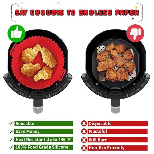 - وفر المال والوقت: عبوتان من بطانات السيليكون القابلة لإعادة الاستخدام للمقلاة الهوائية مقاس 22 سم وهي ملحق لا غنى عنه للمقلاة الهوائية. قل وداعًا لورق البرشمان باهظ الثمن وتنظيف سلة المقلاة الهوائية. مع بطانات السيليكون الخاصة بنا، ستكون أكثر استعدادًا لاستخدام المقلاة الهوائية والمزيد من الاستمتاع بالطهي.
