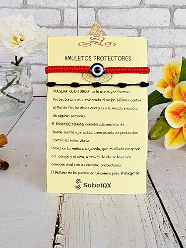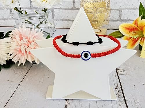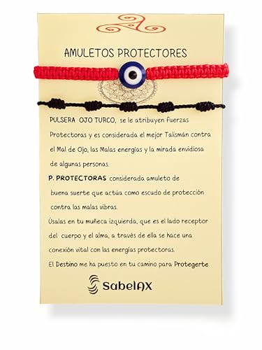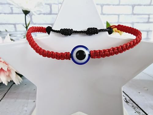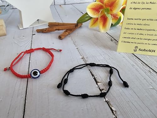 SabelAX - سوار احمر 7 عقد وسوار عين تركية من سابيلاكس، خيط احمر، تميمة الحظ السعيد، حماية العين الشريرة، للنساء والرجال والازواج، سوار كابالا، قطعتين (احمر او تي 7N اسود)